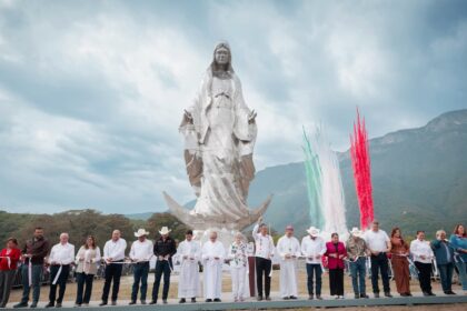 Dialogando Entregan Américo y María escultura monumental de la Virgen de la Misericordia en El Chorrito